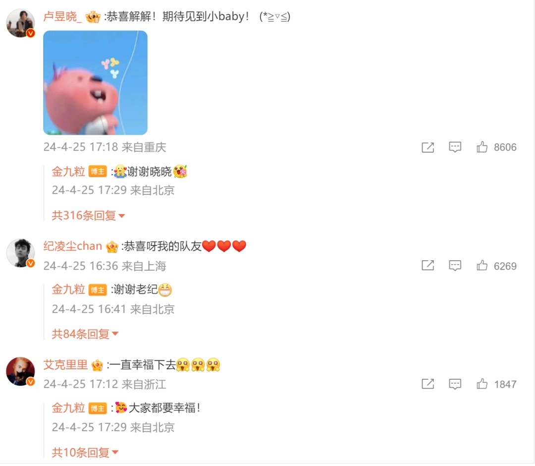 今天,和金靖合作过《云之羽》的田嘉瑞、卢昱晓,以及梁雪峰、大王、纪凌尘、艾克里里都送上祝福。
